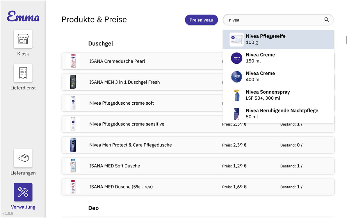 Mal eben schnell das Wichtigste einkaufen und sich alles andere liefern lassen: Nutzen Sie neben dem Emma Kiosk noch den Lieferdienst, haben Ihre Bewohner*innen tolle Artikel direkt vor Ort und gleichzeitig Zugriff auf unser rund 700 Produkte starkes Gesamtsortiment.