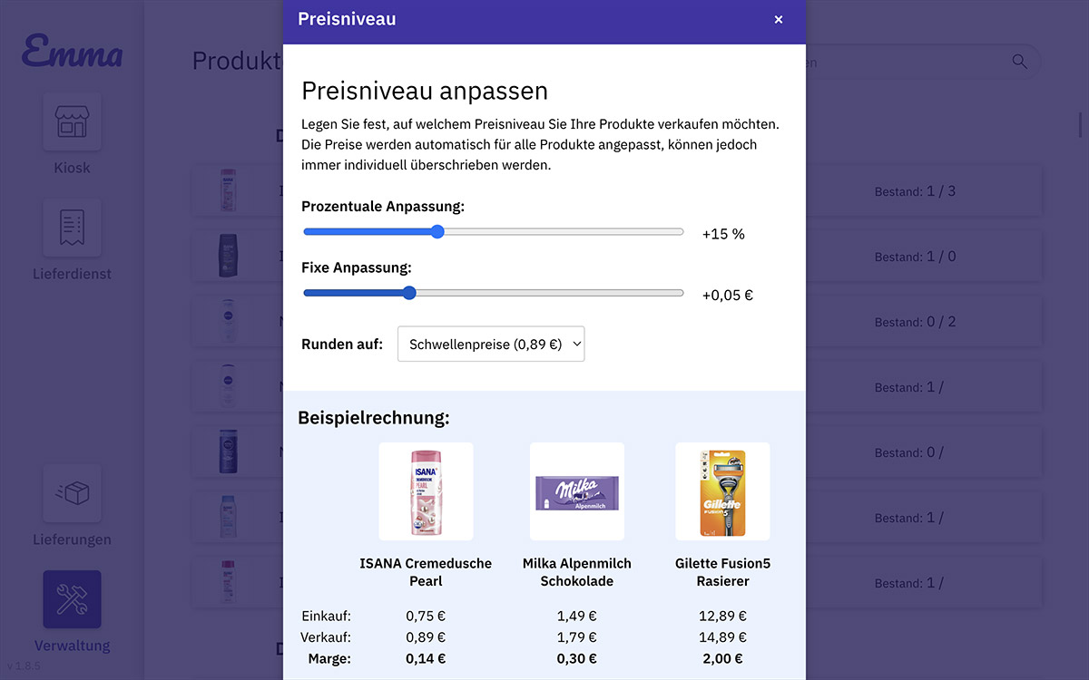Sowohl für die Emma Kiosksoftware als auch für die Belieferung fallen keine Gebühren an. Sie erwerben lediglich die gewünschte Kioskausstattung und die Ware von uns.