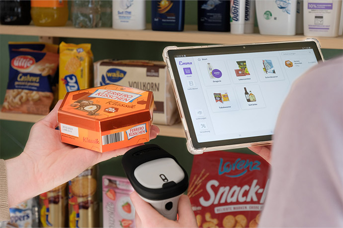 Sie erfassen die Ware mit Tablet und Scanner und weisen den Verkauf direkt Ihren Bewohner*innen zu. Auf Wunsch funktioniert das komplett bargeldlos!