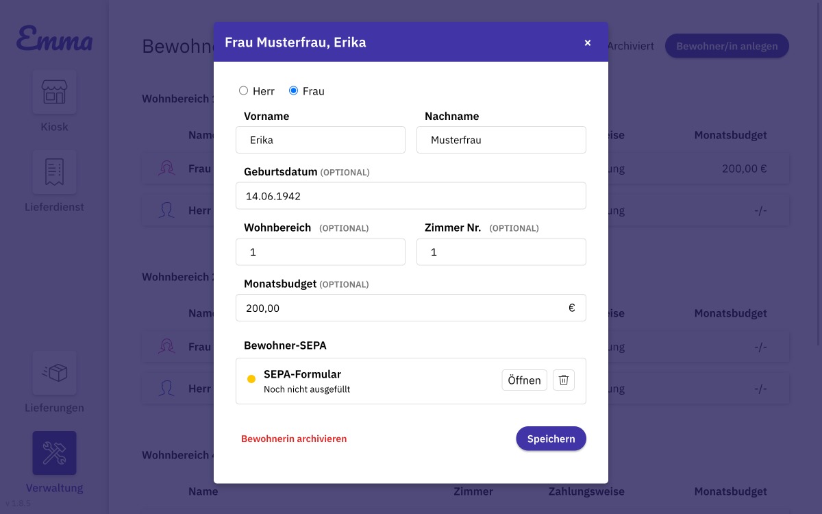 Nein, Sie können gerne unseren Einrichtungsservice nutzen und uns eine Bewohnerliste als Excel zukommen lassen. Wir legen dann alle Bewohner*innen für Sie an.